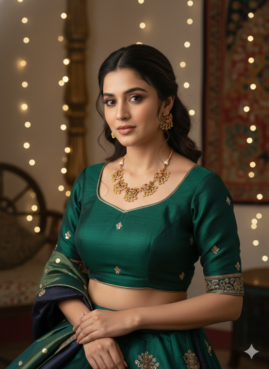 Matt finish ki wajah se yeh set zyada glossy nahi lagta, balki ek soft antique look deta hai—jo saree, lehenga aur traditional suits ke saath bahut achha lagta hai. Yeh jewellery un logon ke liye perfect hai jo heritage-inspired designs pasand karte hain.