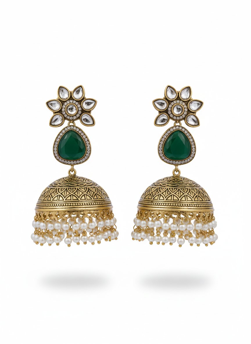 Emerald Bloom Antique Jhumka Earrings