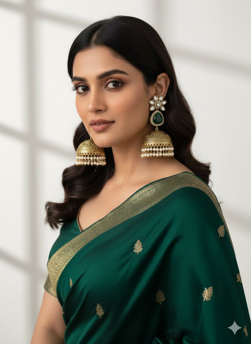 The balanced size and classic detailing make them ideal for both festive and wedding wear. Whether paired with sarees, lehengas, or anarkalis, these jhumkas add a graceful and royal touch to every look.