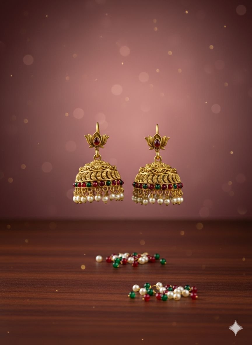 Traditional lotus motif jhumka design