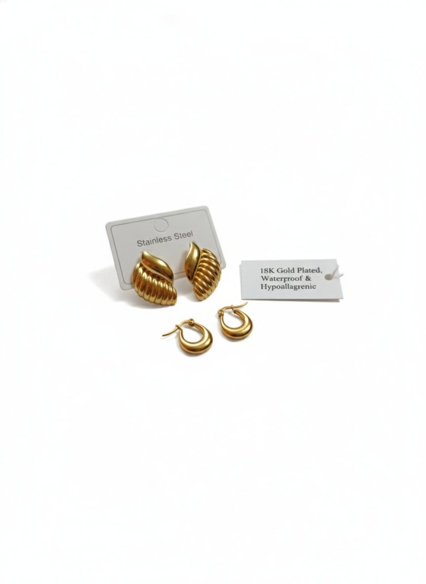 Add effortless elegance to your daily style with the Luna Curve 18K Gold Plated Earrings. Designed in a modern curved texture, these earrings are crafted from premium stainless steel and finished with durable 18K gold plating. They are anti-tarnish, waterproof, and hypoallergenic, making them perfect for all-day, everyday wear—even in humid or wet conditions.